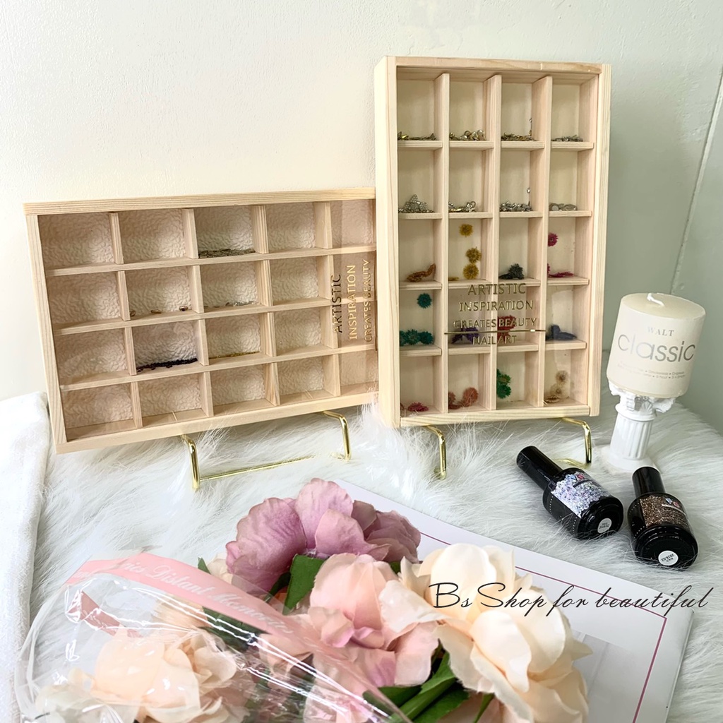 【台灣出貨附發票】❤原木20格收納盒 超質感收納 飾品收納 美甲收納 美甲工具 美甲材料【BS SHOP】