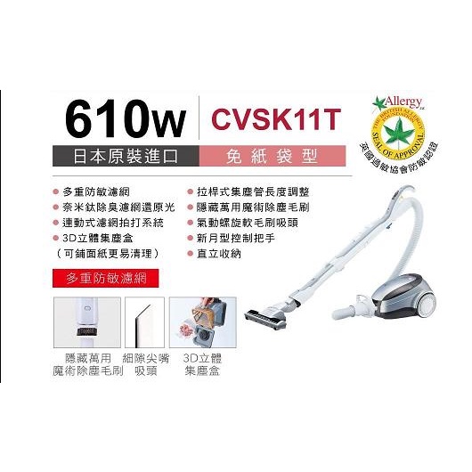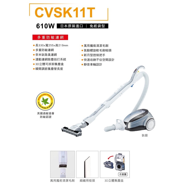 10倍蝦幣回饋🔥HITACHI 日立 610W日本原裝免紙袋吸塵器 CVSK11T CV-SK11T