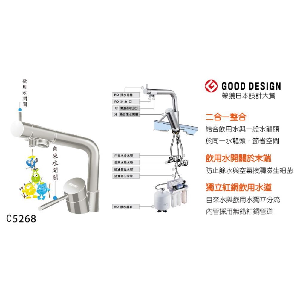 🔥促銷免運🔥LOLAT羅力C5268 無鉛RO廚房兩用水龍頭 NSF認證 廚房龍頭D5268LF