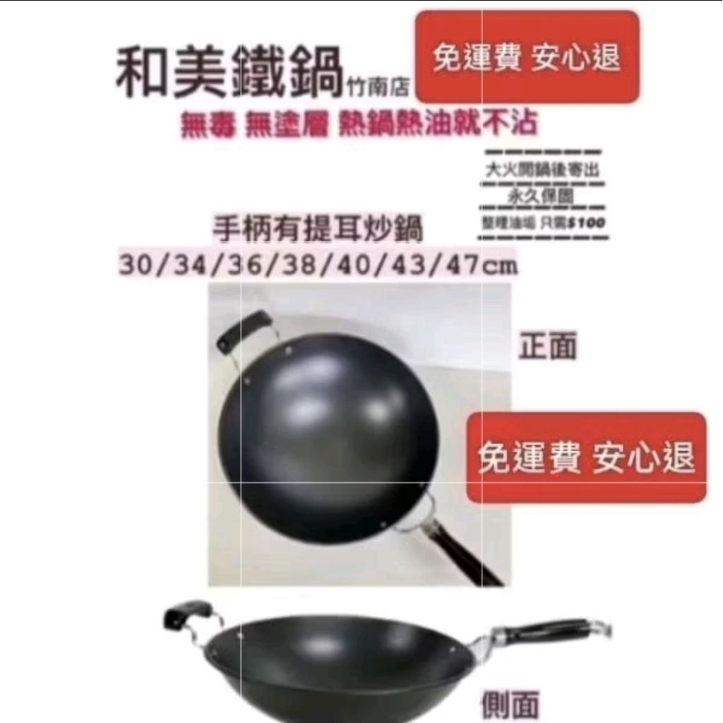 和美無毒鐵鍋手柄圓底加耳 開鍋寄出 超商可取貨 各尺寸 手柄有提耳炒鍋,圓底,大火開鍋後寄出