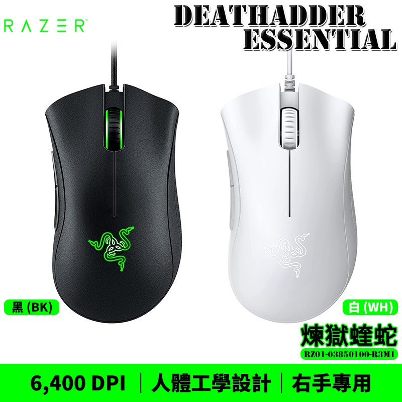 Razer 雷蛇 DeathAdder Essential 煉獄蝰蛇 電競滑鼠 6400DPI 光學滑鼠 黑/白