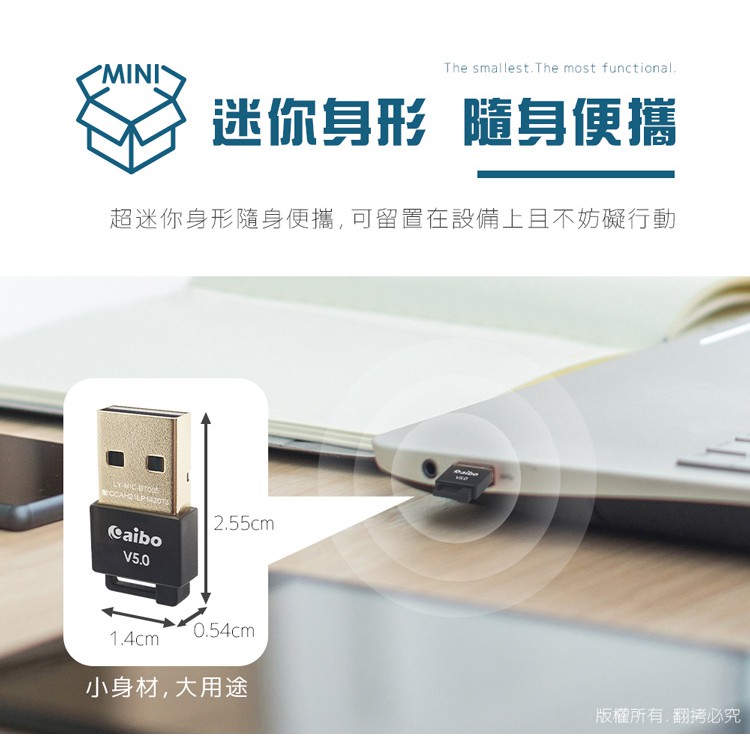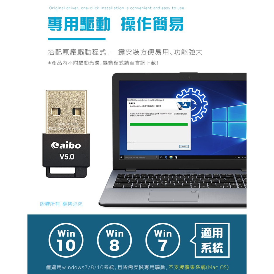 aibo 台灣瑞昱晶片 USB藍牙V5.0傳輸器 附防塵蓋 藍牙傳輸 USB藍牙 現貨 廠商直送