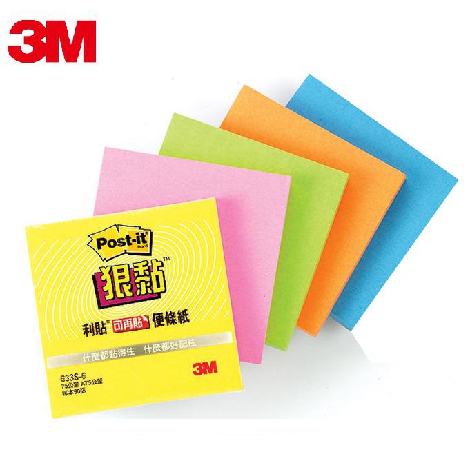 【乖迪文具小舖】3M POST-IT 狠黏可再貼利貼便條紙 #633S (五色) 3X3"