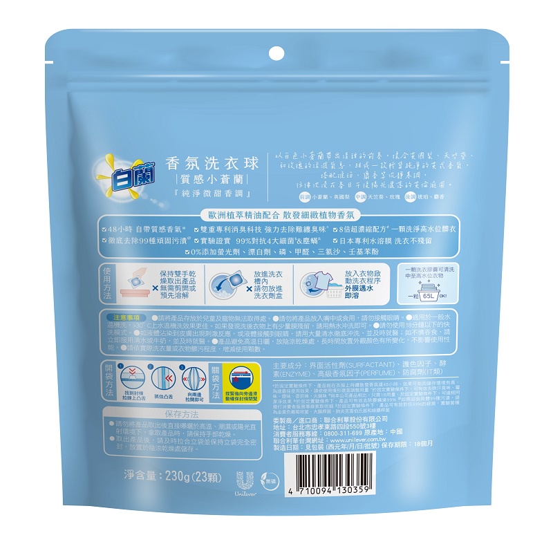 白蘭 香氛洗衣球(質感小蒼蘭) 10g克 x 23顆 x 1Bag包【家樂福】