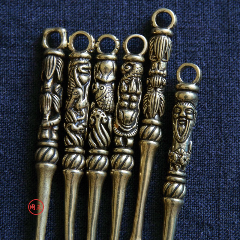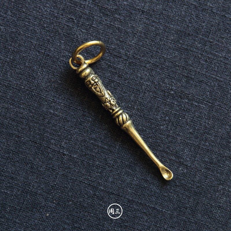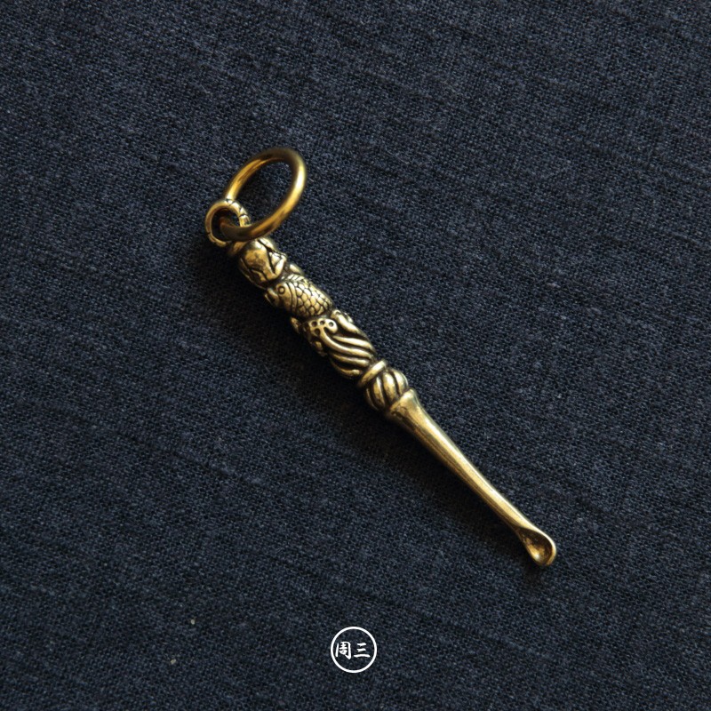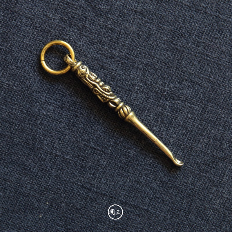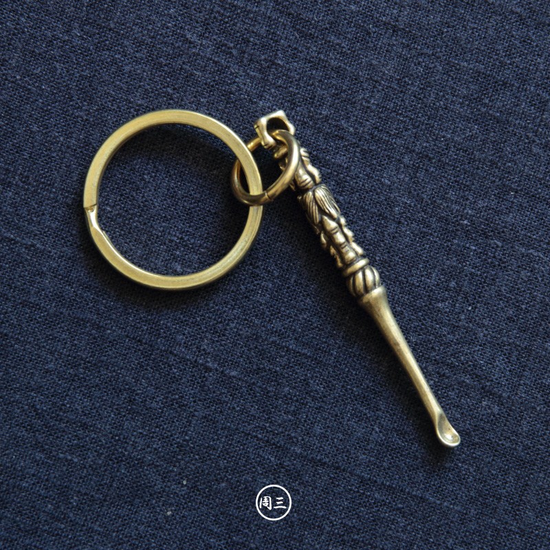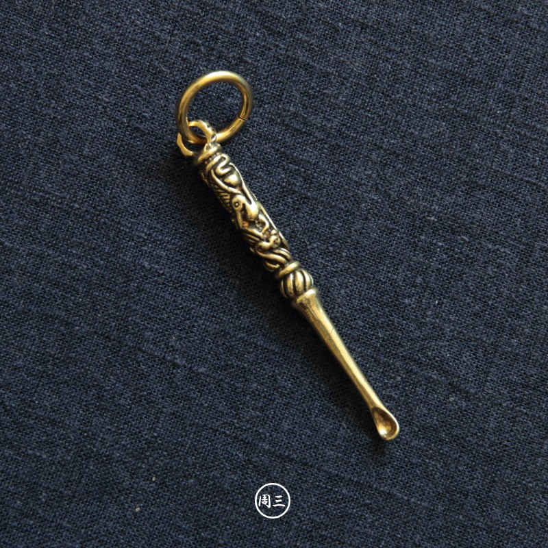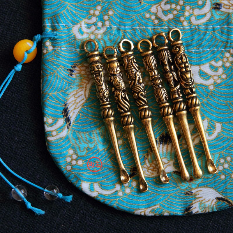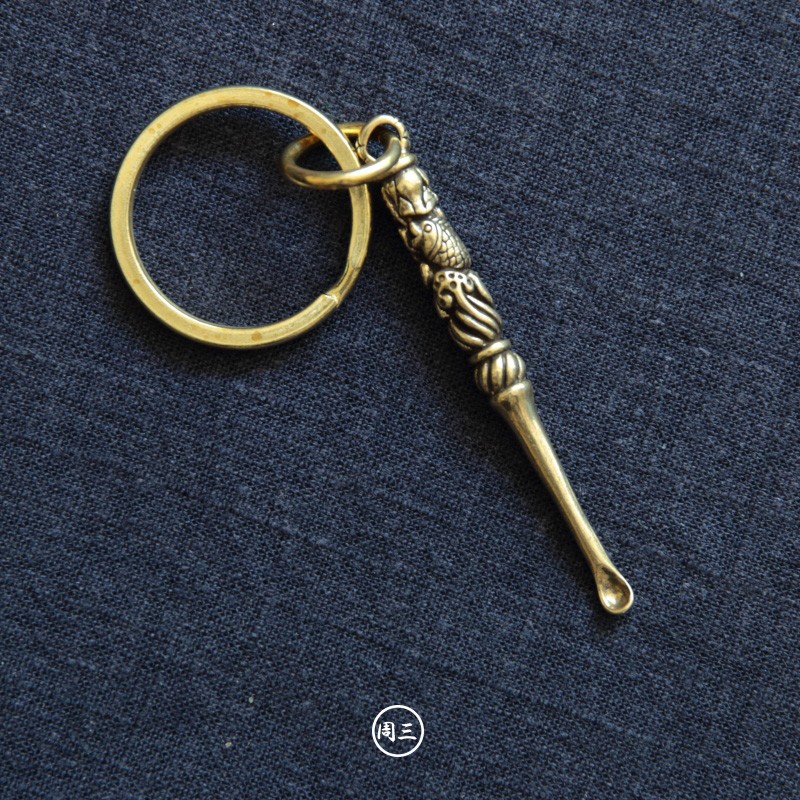 浮刻耳勺復古中國風掏耳勺挖黃銅金屬耳勺隨身便攜鑰匙扣耳勺潔具