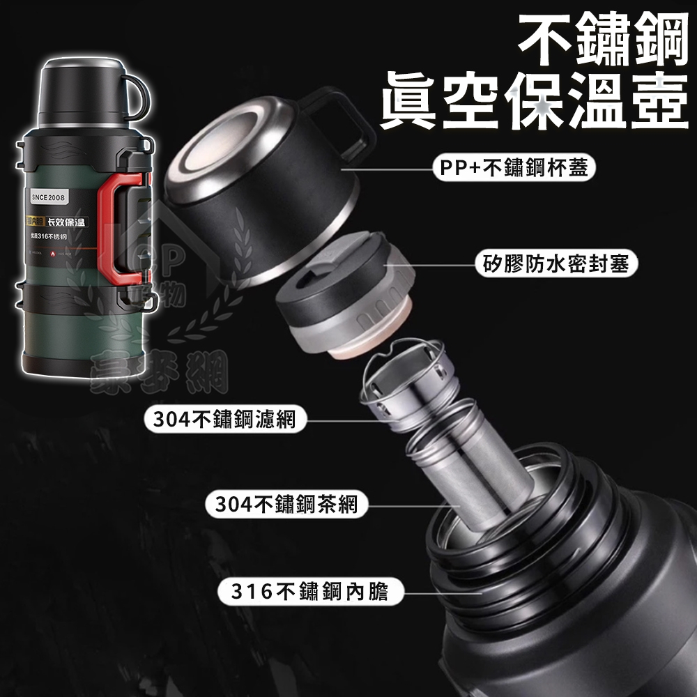 【316保溫壺】附茶隔背帶不銹鋼水壺 不鏽鋼真空保溫瓶露營1.7L/2L/2.5L/3.2L☆精品社☆