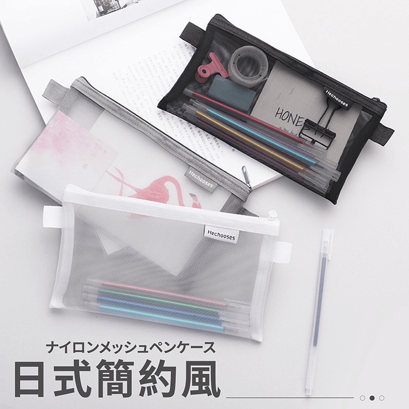 尼龍網眼筆袋【178小舖】無印風筆袋 素色筆袋 網紗筆袋 方形筆袋 透明筆袋 考試用筆袋 學生筆袋 鉛筆盒 文具袋 筆袋