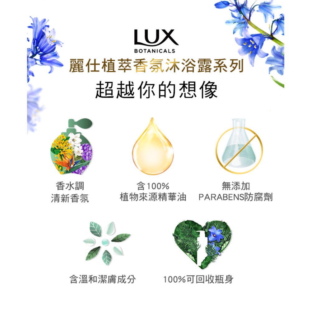 LUX麗仕 植萃香氛沐浴露(水嫩亮白-藍風鈴) 550g【家樂福】