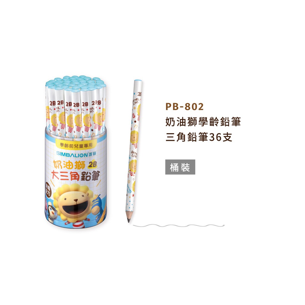 【彩虹文具小舖】雄獅 PB-802 奶油獅學齡鉛筆三角鉛筆36支筒裝 奶油獅大三角鉛筆 奶油獅三角鉛筆 大三角鉛筆