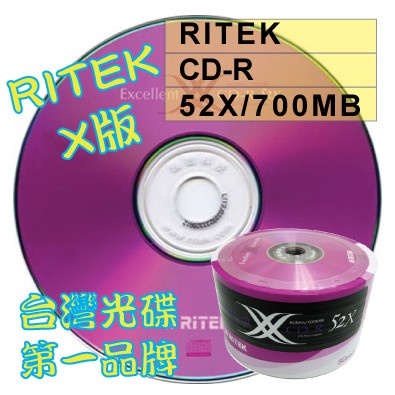 【台灣第一品牌】50片 RITEK X版 CD-R52X/700MB/80MIN空白燒錄光碟片