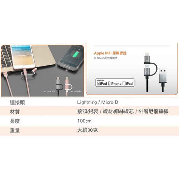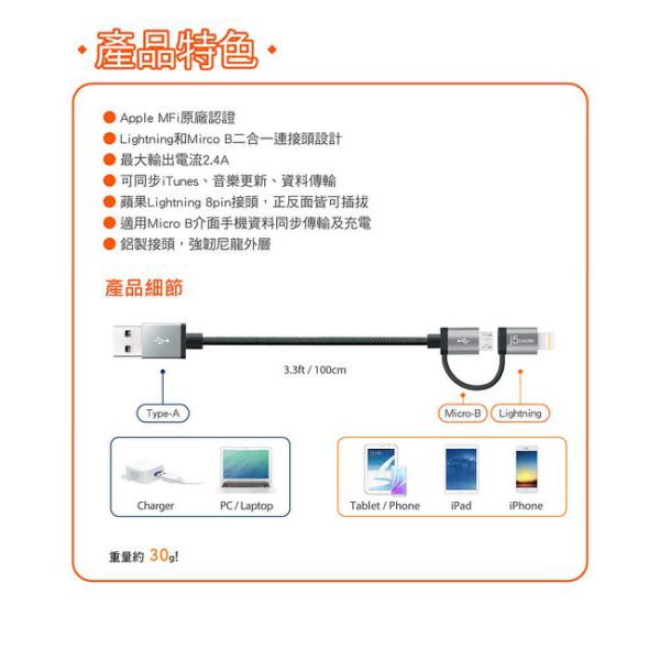 車之嚴選 cars_go 汽車用品【APPLE/MicroUSB to USB】2.4A充電傳輸線(1m長) 兩頭式