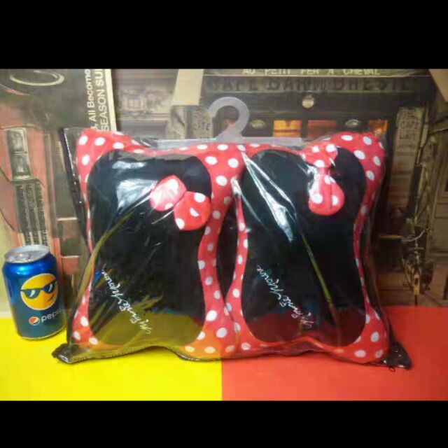 【犬掌小舖-一對入-出清現貨】米妮蝴蝶結頭枕,靠墊,汽車枕頭,精品內飾
