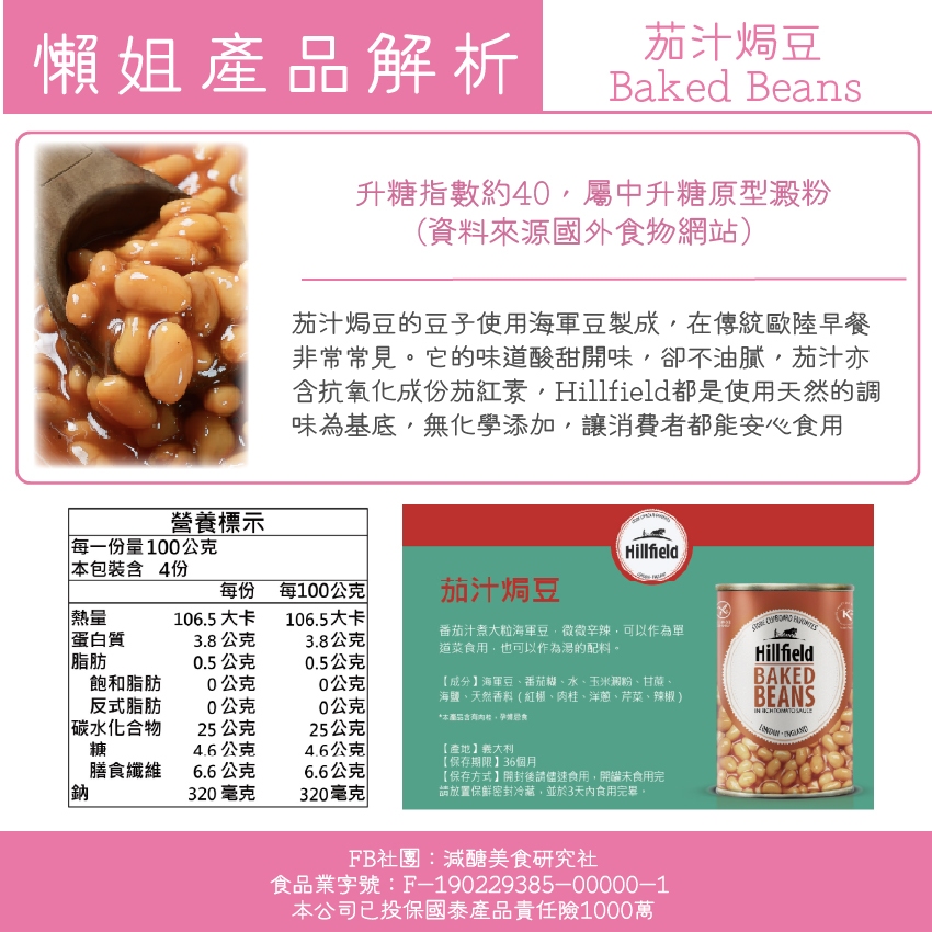【懶惰姐減醣美食研究社】英國 Hillfield 紅腰豆 海軍豆 黑點豆 茄汁焗豆 早餐豆 罐頭 無添加 義大利 低升糖