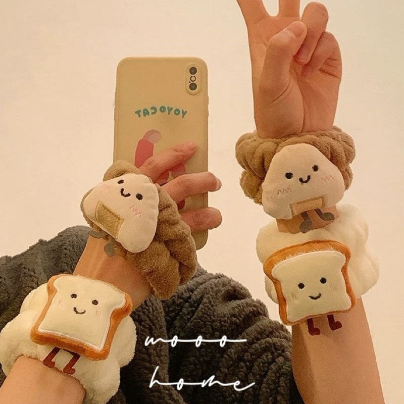 Wooohome 台灣現貨 飯糰吐司洗臉手腕帶 吸水手腕帶 洗手洗臉手腕帶防濕袖 洗漱腕帶 防濕腕帶 珊瑚絨 洗漱用品