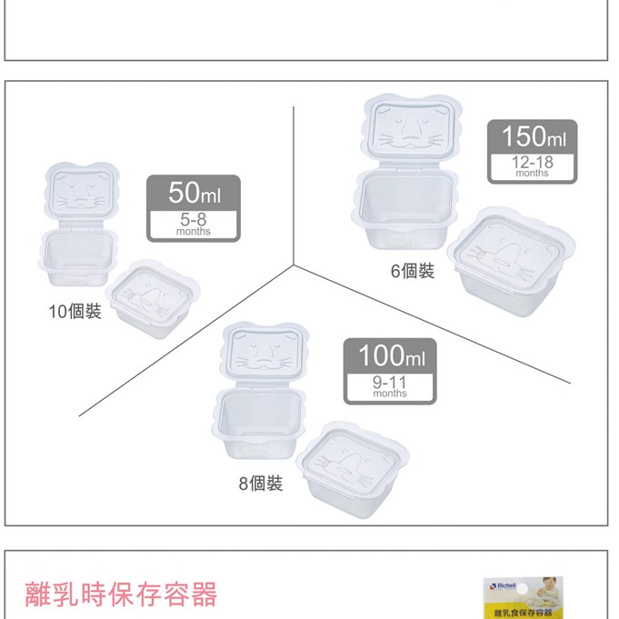 RICHELL利其爾卡通型 離乳食分裝盒10入/50ML/100ML/150ML