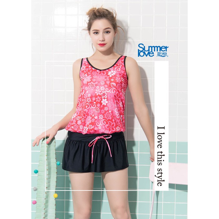 【Summer Love 夏之戀】加大碼連身裙二件式泳裝(S19704)