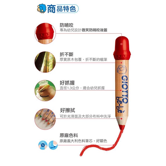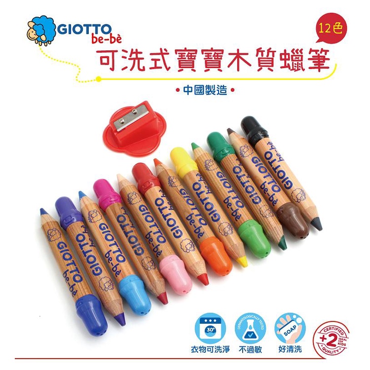 GIOTTO be-be可洗式寶寶木質蠟筆/ 12色/ 新版 eslite誠品