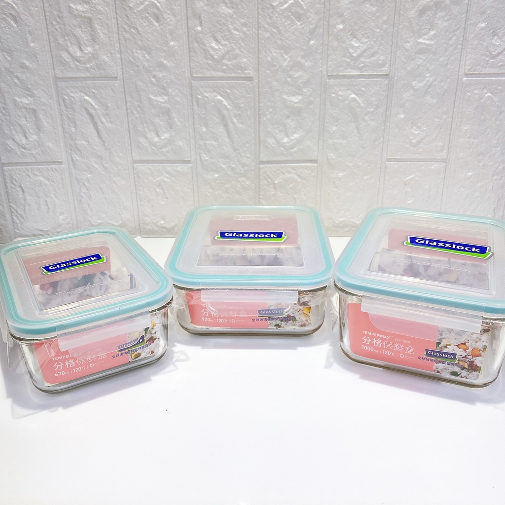 Glasslock強化玻璃分格保鮮盒670ml/920ml/1000ml 明星商品分隔保鮮盒密封盒微波便當盒野餐盒水果盒