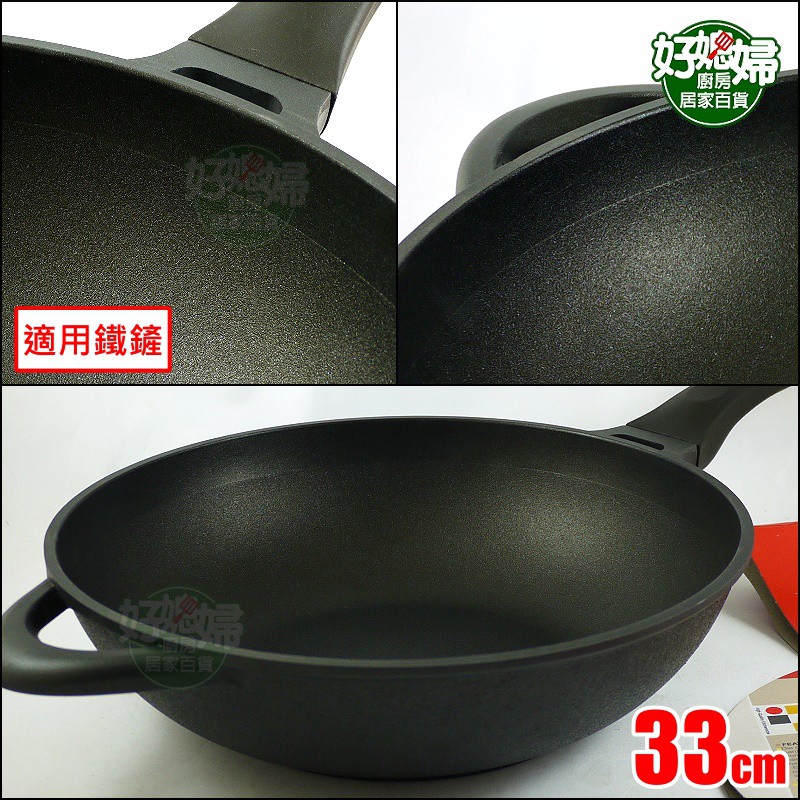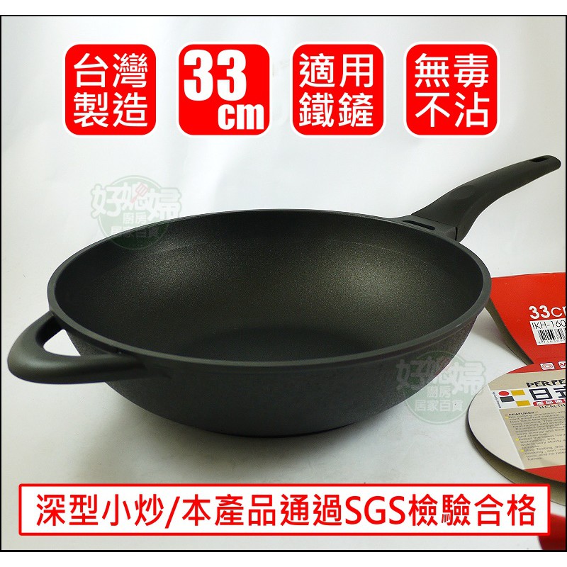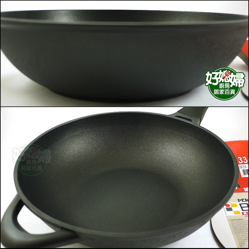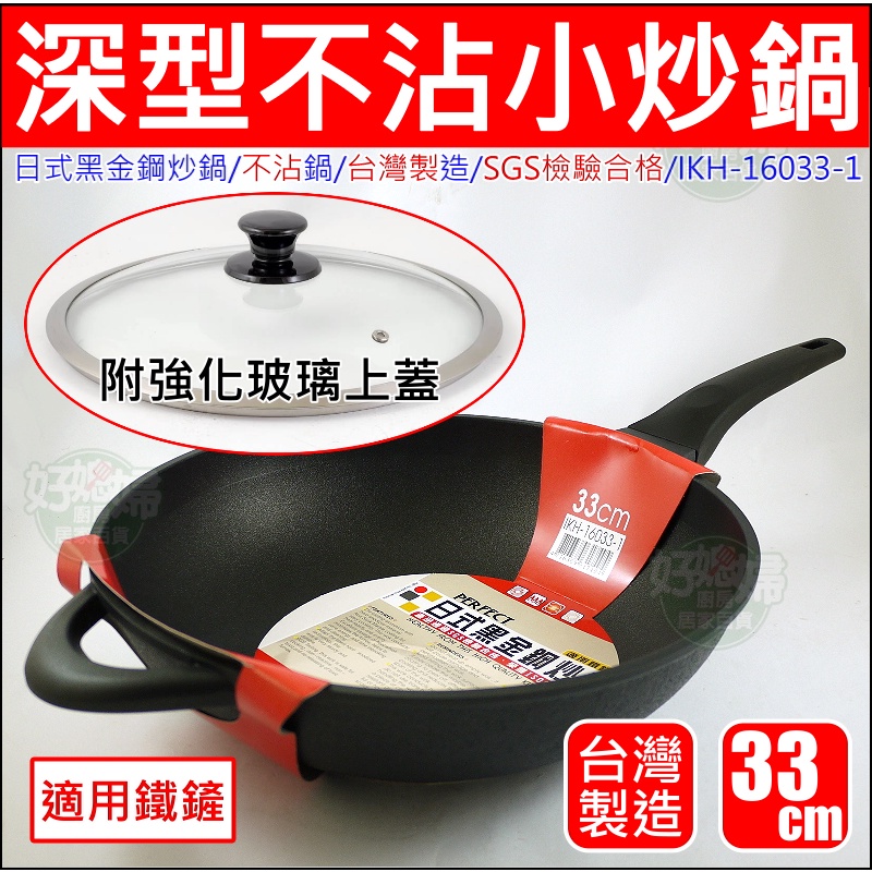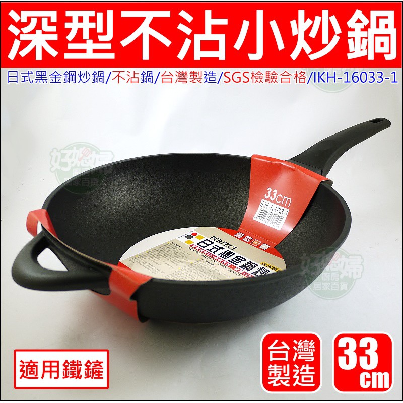台灣製/理想牌【PERFECT 日式黑金鋼炒鍋33cm】不沾鍋/深型小炒鍋/適用鐵鏟/安全無毒炒菜鍋/少油煙鍋《好媳婦》