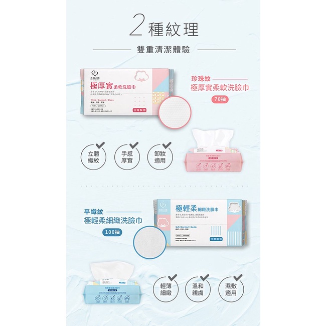 開發票 我的心機 極厚實柔軟洗臉巾(珍珠紋) 70抽/極輕柔細緻洗臉巾(平織紋) 100抽 多款供選