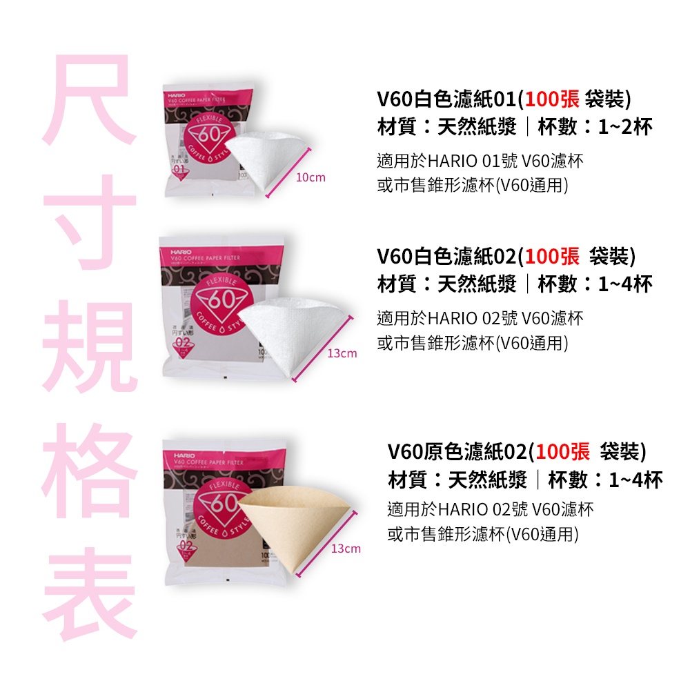 HARIO V60原色濾紙02 (100張袋裝) (適用 V型濾杯/冰瞳/星芒/KONO/花瓣/Kinto)