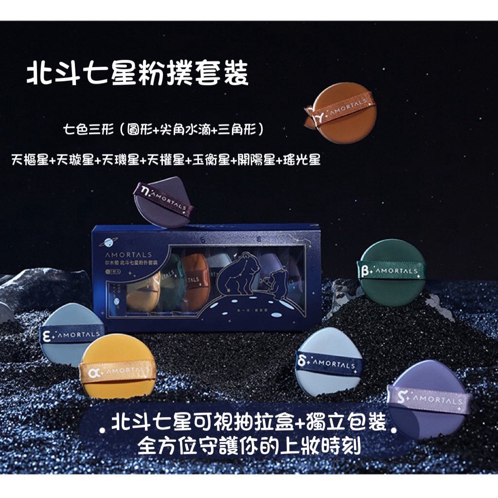 爾木萄北斗七星粉撲套裝乾濕兩用化妝海綿 超軟不吃粉海綿 氣墊粉撲(一盒7枚)