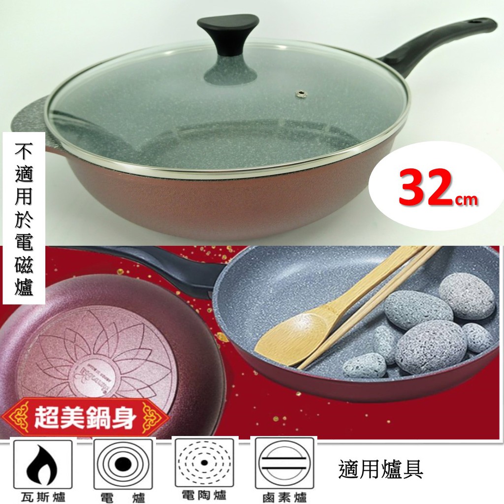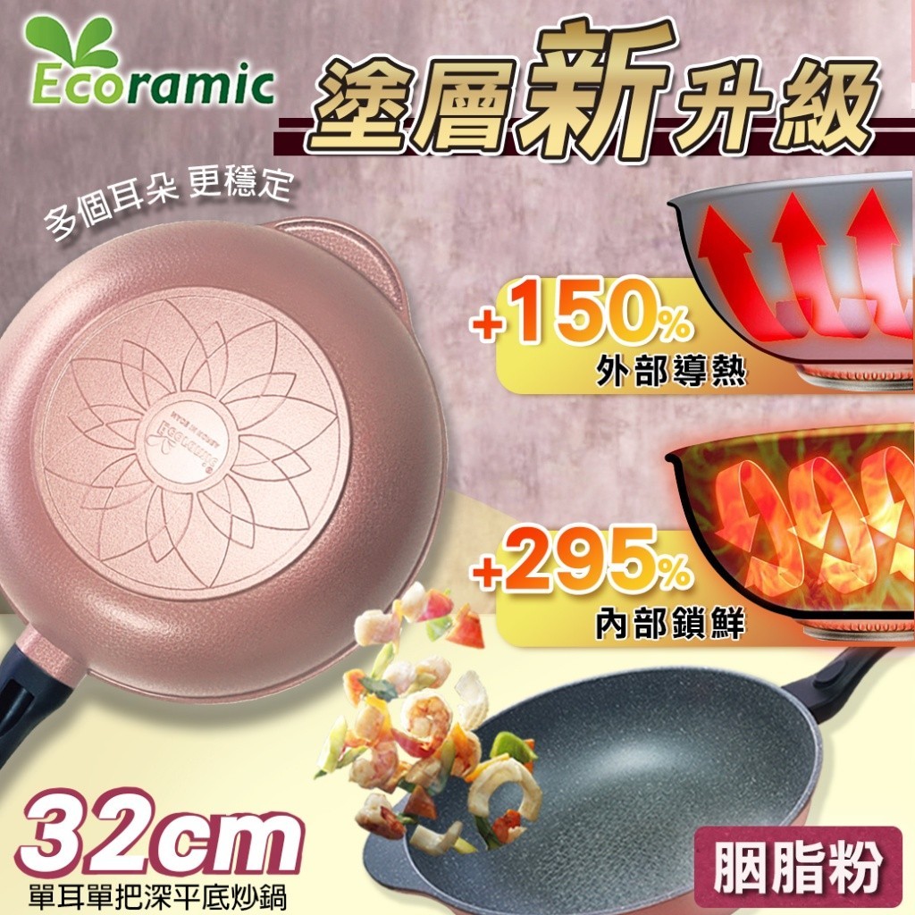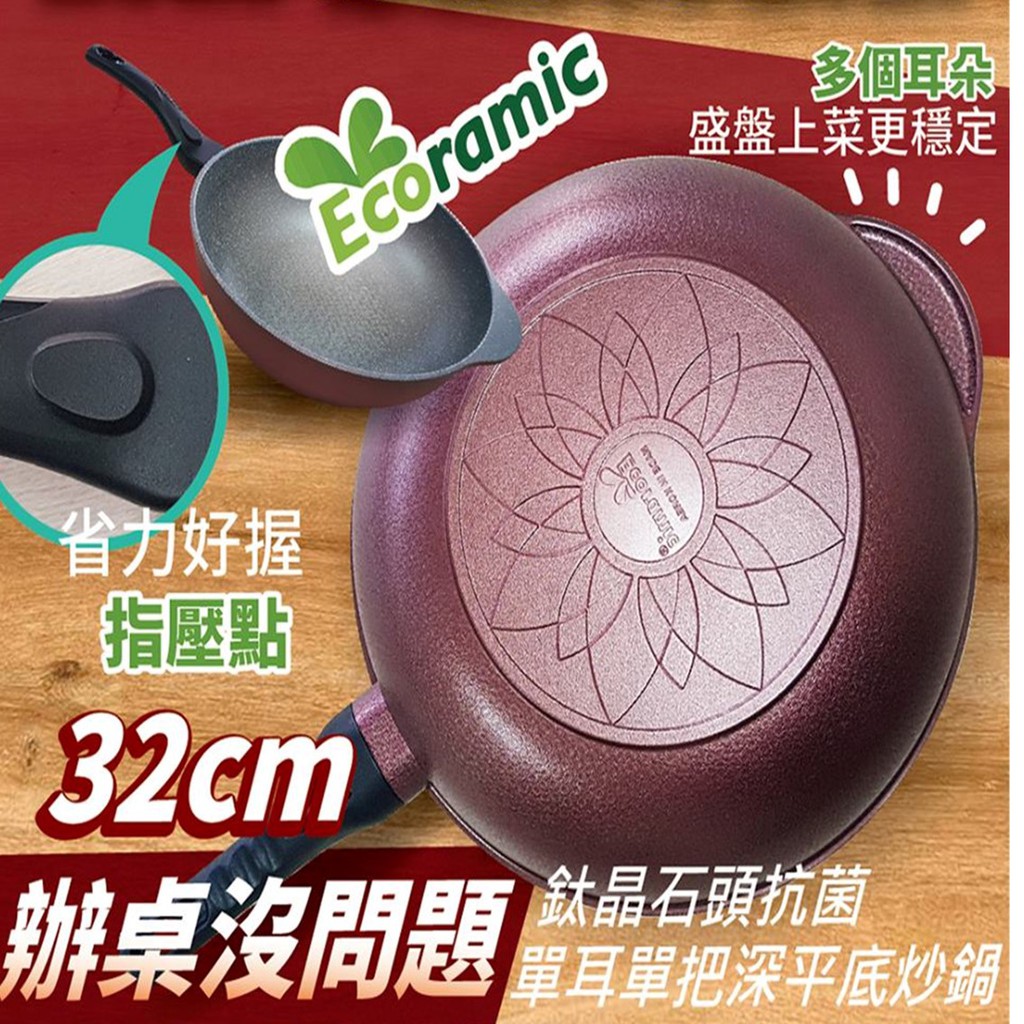 【 32cm單耳單把深平底炒鍋】韓國Ecoramic 鈦晶石平底不沾鍋【超商只能放一只支】
