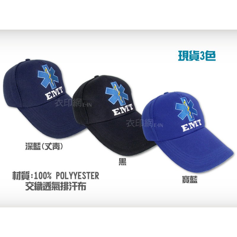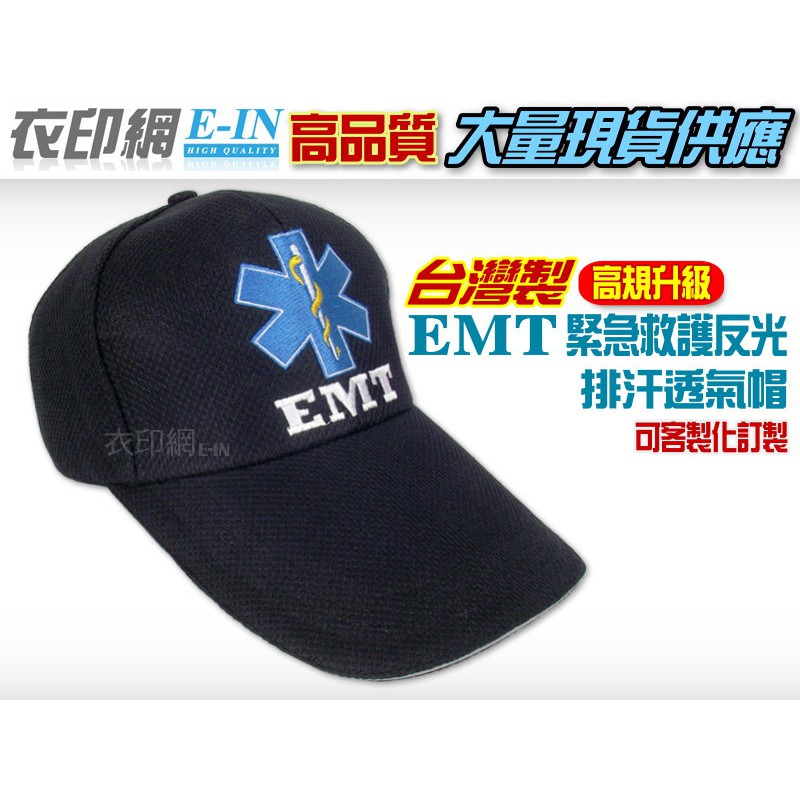 衣印網e-in-台灣製黑生命之星EMT緊急救護技術員反光帽工作帽交織透氣排汗帽空帽烏力帽黑帽磨毛帽工廠直營可訂製