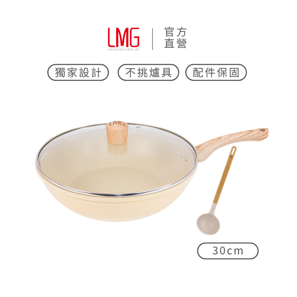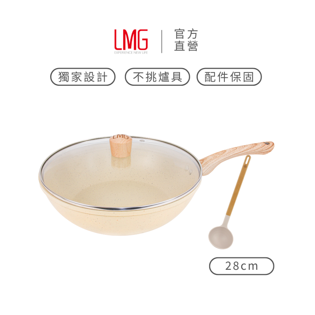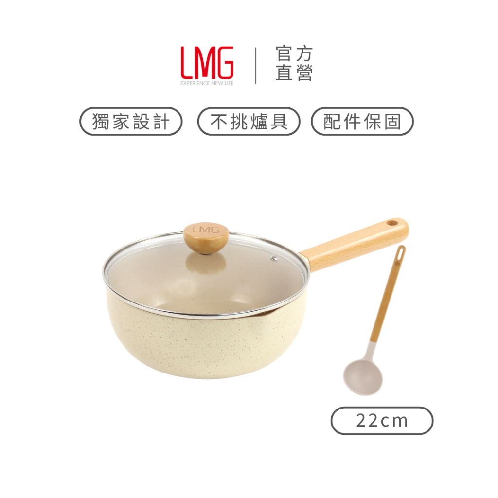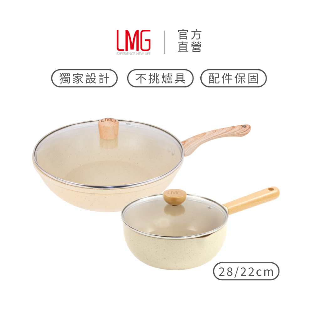 【LMG 官方旗艦店】香草系列-不沾炒鍋-28CM/30CM(適用各種爐具)含玻璃鍋蓋款-新品22CM雪平鍋-宅配限定