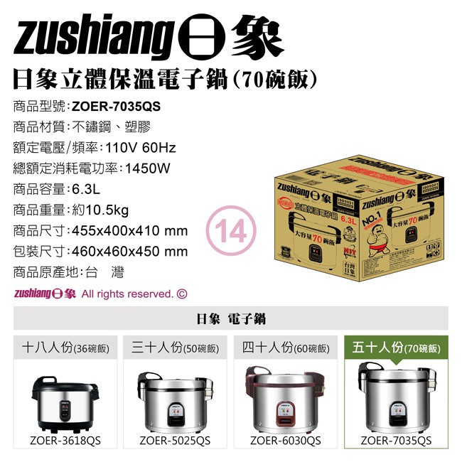 日象 6.3L炊飯立體保溫電子鍋(70碗飯) ZOER-7035QS 免運