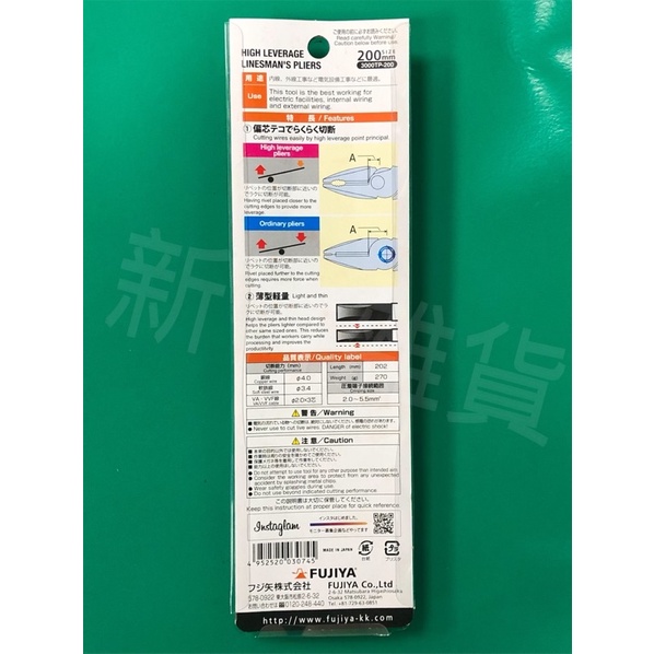 (FUJIYA富士箭)偏芯強力鋼絲鉗200mm 3000TP-200