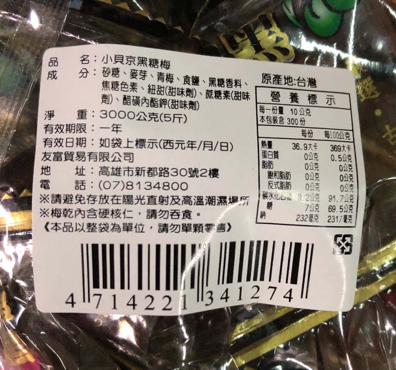 {電子發票}3Q ma~小貝京~梅心糖(梅子麥芽糖)/黑糖梅 600公克/3000公克