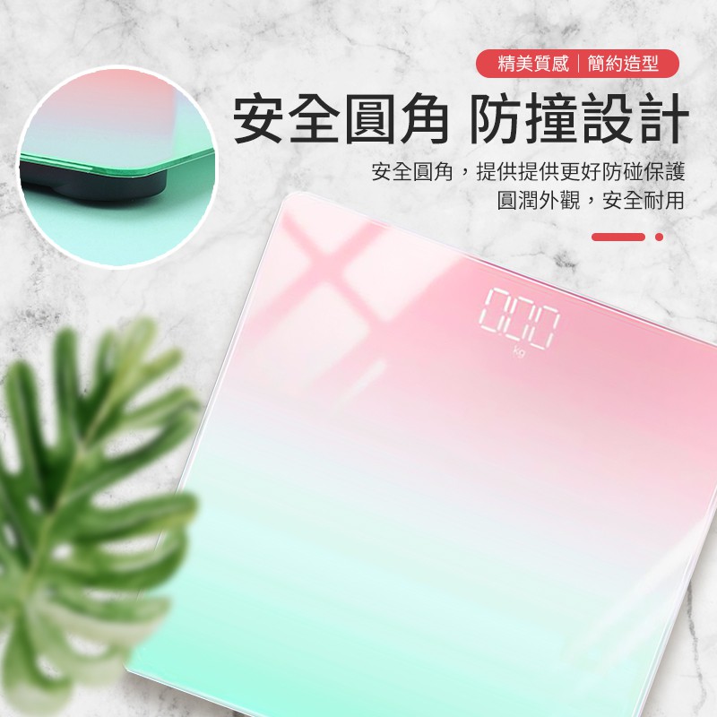 台灣現貨 LED體重計 電池款 智能漸層電子秤 圓角鋼化玻璃 可秤180KG 馬卡龍色 電子體重機 星星小舖#