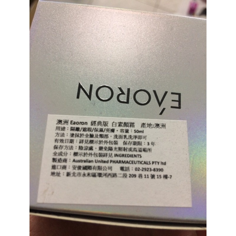 澳洲EAORON最新白素顏霜 50ml 原廠防偽碼最新