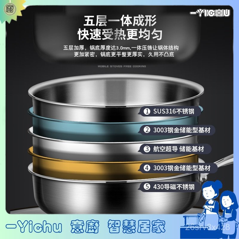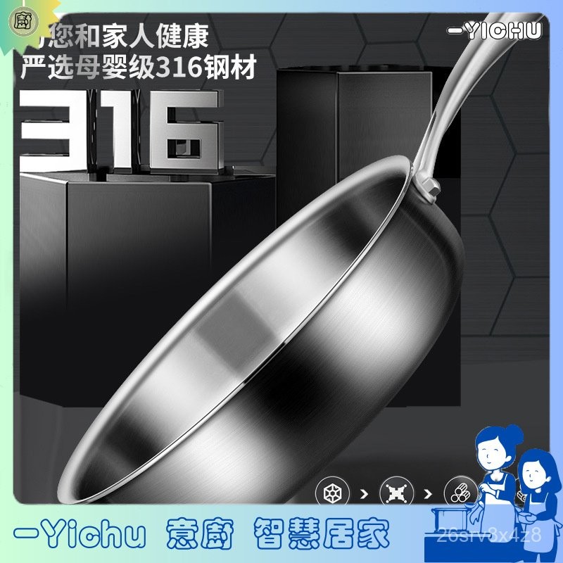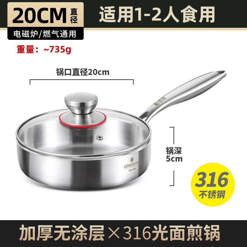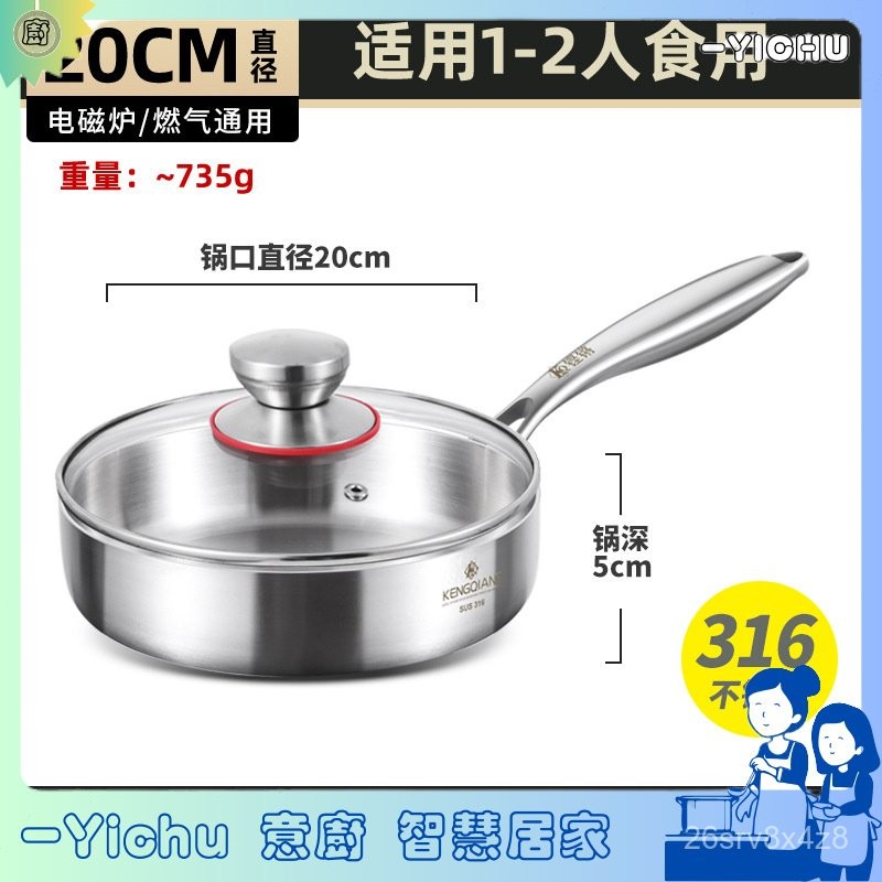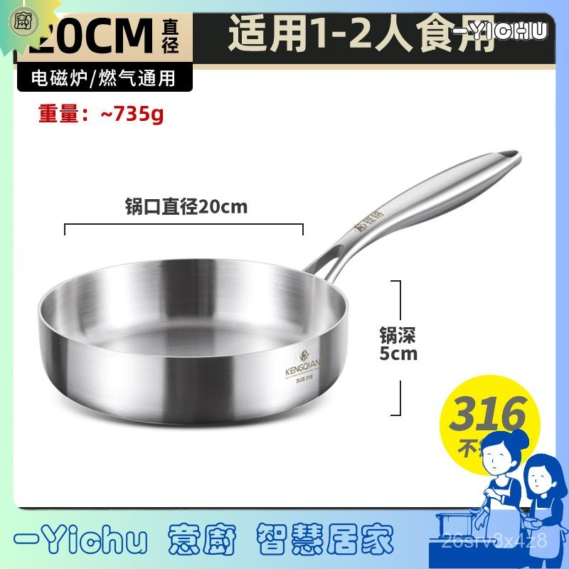 YIChu-德國316不鏽鋼平底鍋家用小號無塗層煎鍋不粘鍋電磁爐燃氣竈通用 79TP