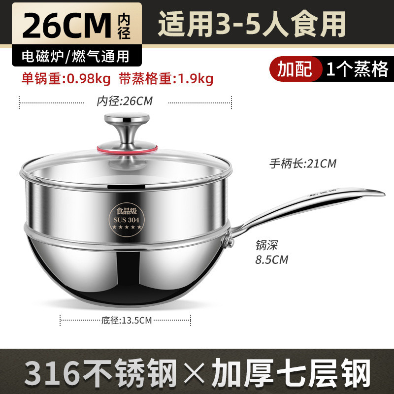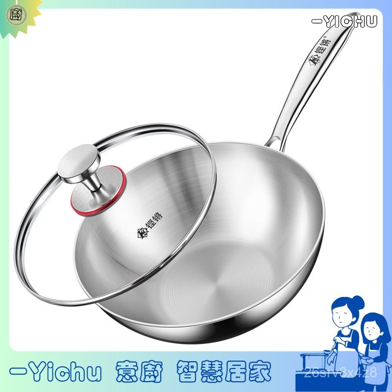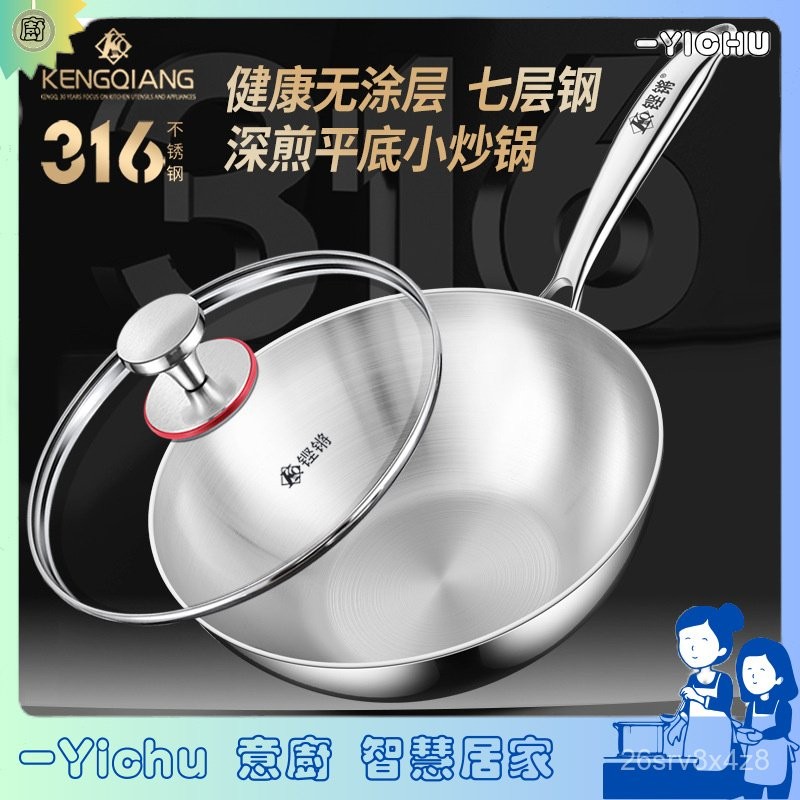 YIChu-316不鏽鋼小炒鍋家用平底電磁爐專用無塗層不粘鍋一人食小炒鍋 UDNL