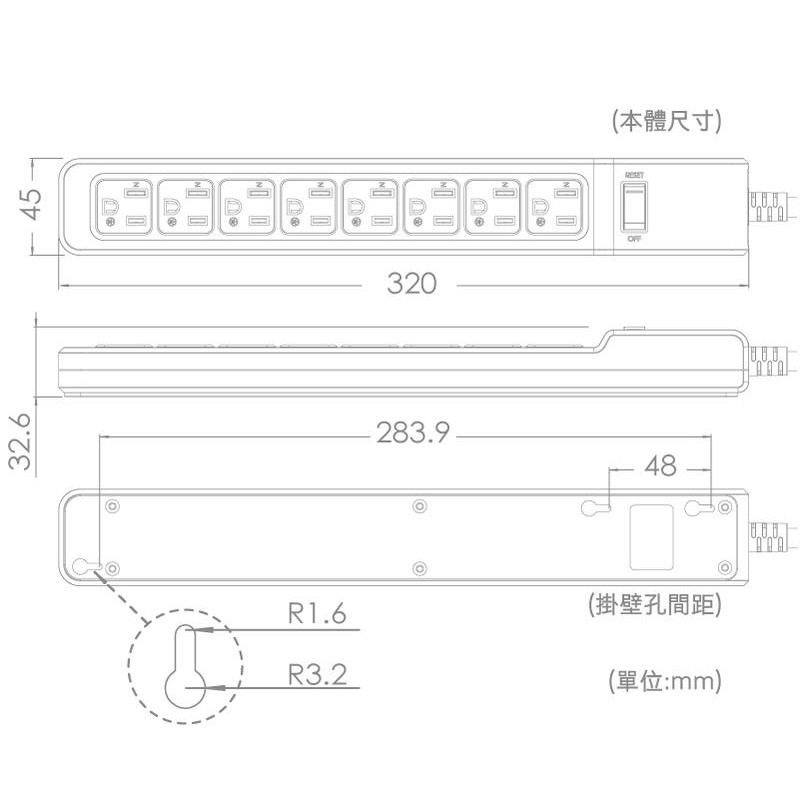 PU-3188 台灣製 iPlus+ 保護傘 3P電源 延長線 1切 8插 平貼式插頭 防雷突波 防火材質 線長自選