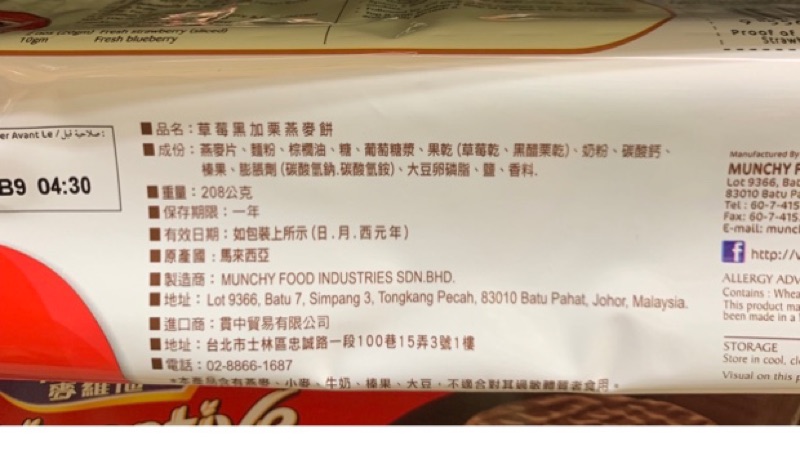 oat krunch燕麥餅草莓黑加栗&黑巧克力208g