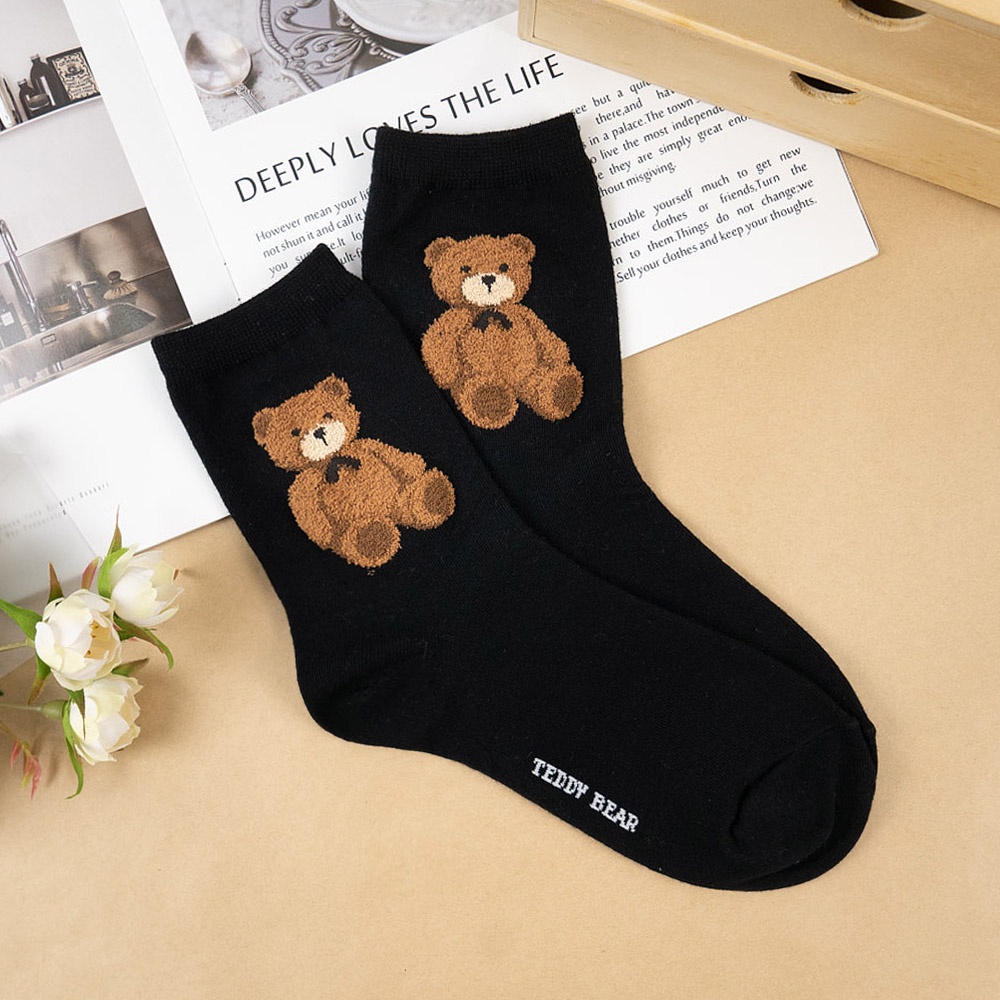 AHUA 韓國襪子 熊熊玩偶系列中筒襪【現貨】女襪 女生襪子 熊熊襪子 襪子推薦 百搭純棉襪 K1493 阿華有事嗎