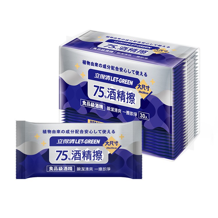 立得清75%酒精擦單片裝30入/包<食用級酒精>全新包裝上市 紙盒裝