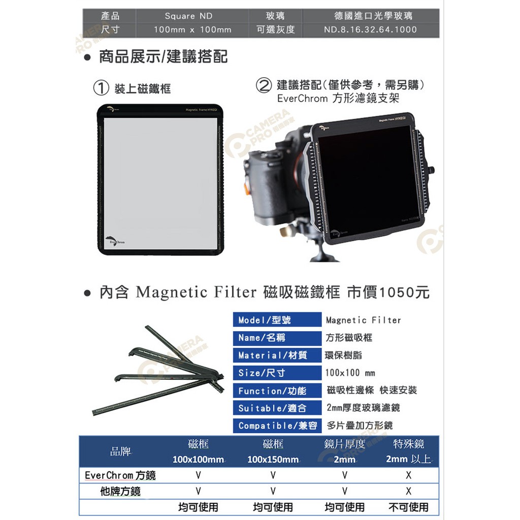 ◎相機專家◎ EverChrom ND16 方形 專用 減光鏡 含磁吸框 100x100mm 抗油 防水 防刮 公司貨