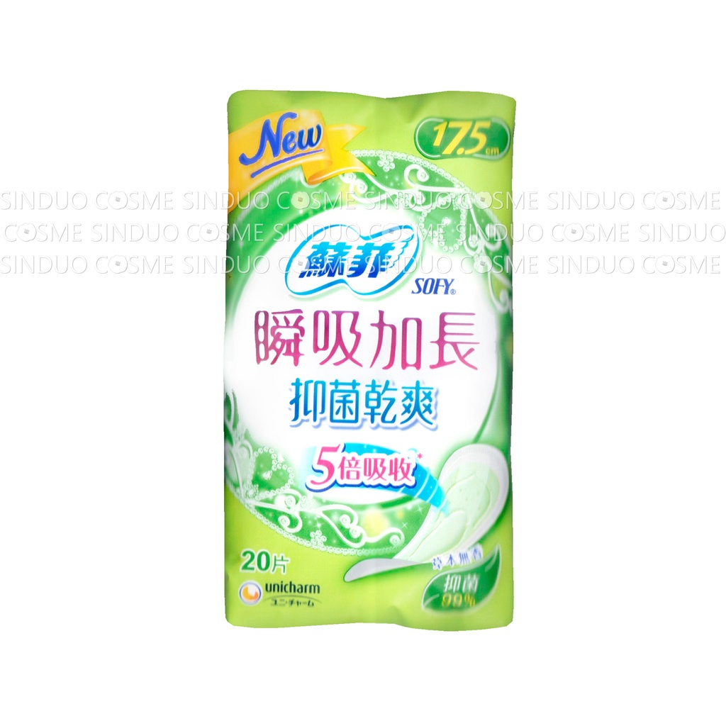 ✨SOFY蘇菲 | 瞬吸加長 抑菌乾爽護墊(草本無香) | 17.5cm | 20片裝