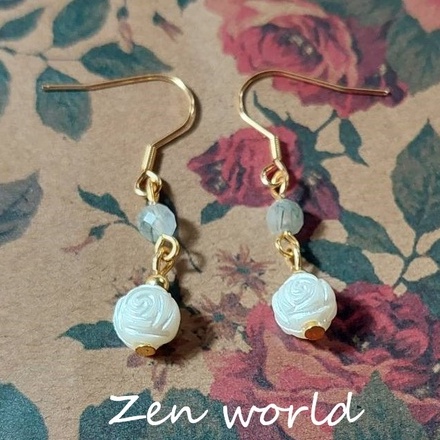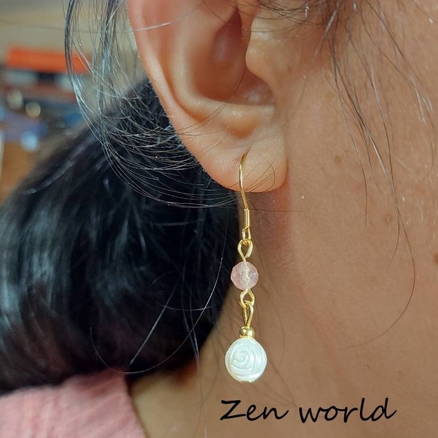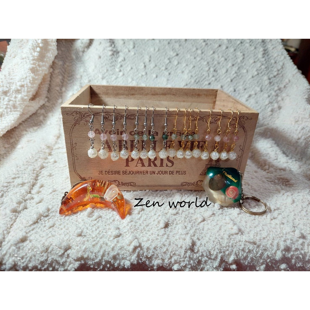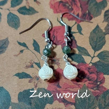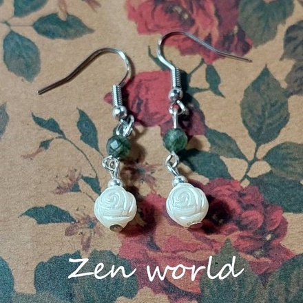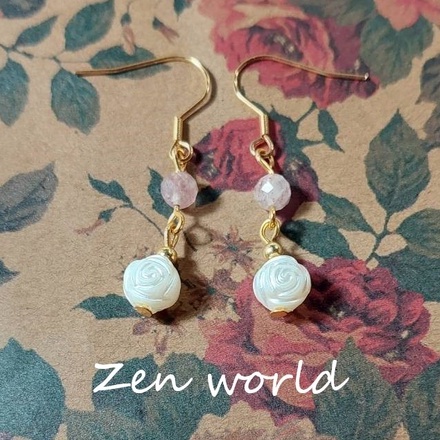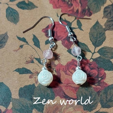 Zen world /耳環/手作耳環/rose/醫療鋼耳鈎/玫瑰花/天然石/草莓晶/綠髮晶/古典/氣質/優雅
