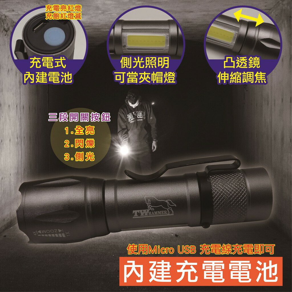 3樂直購 TW焊馬 LED 充電式 便攜 小鋼炮 筆夾式 手電筒 露營 登山 照明 CY-H5241