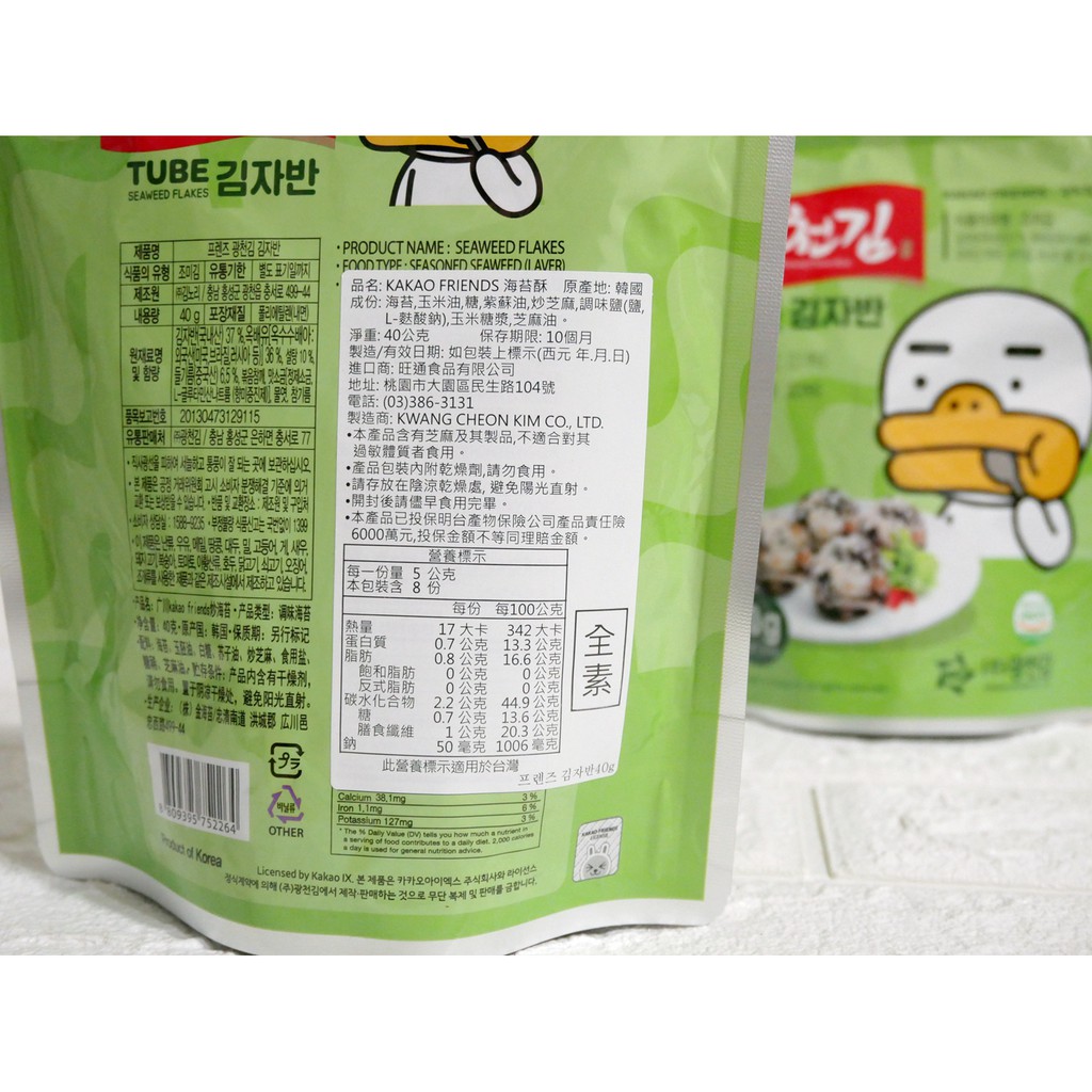 【EV story】廣川海苔酥 廣川 KAKAO FRIENDS 韓國 海苔酥 海苔 飯糰 拌飯 素食 全素 40g