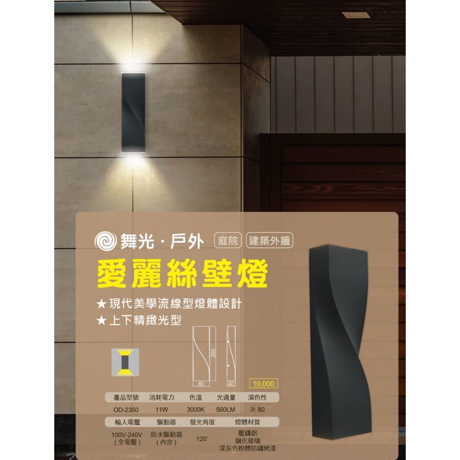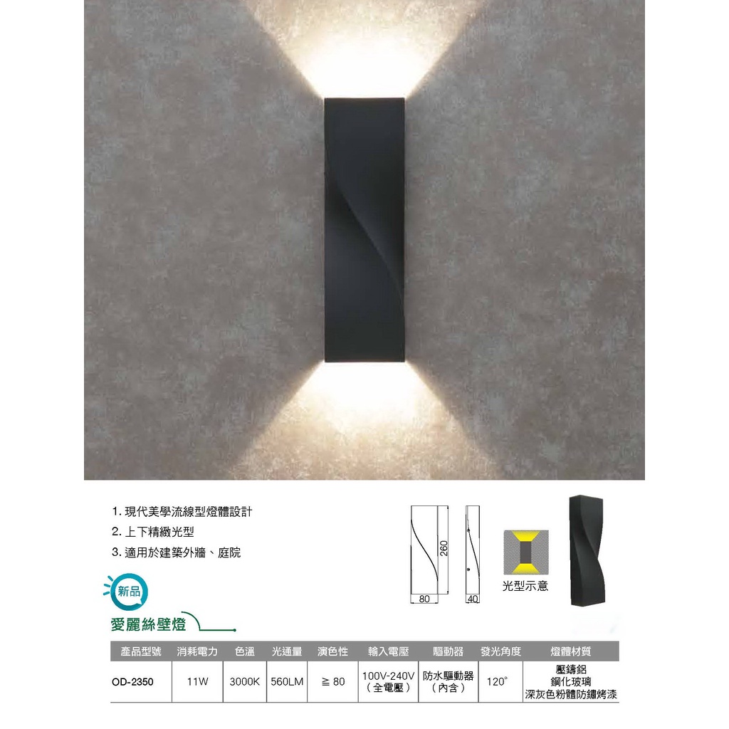 現貨供應 舞光 LED 11W 愛麗絲壁燈(防水驅動器室內戶外可裝)流線造型燈體設計