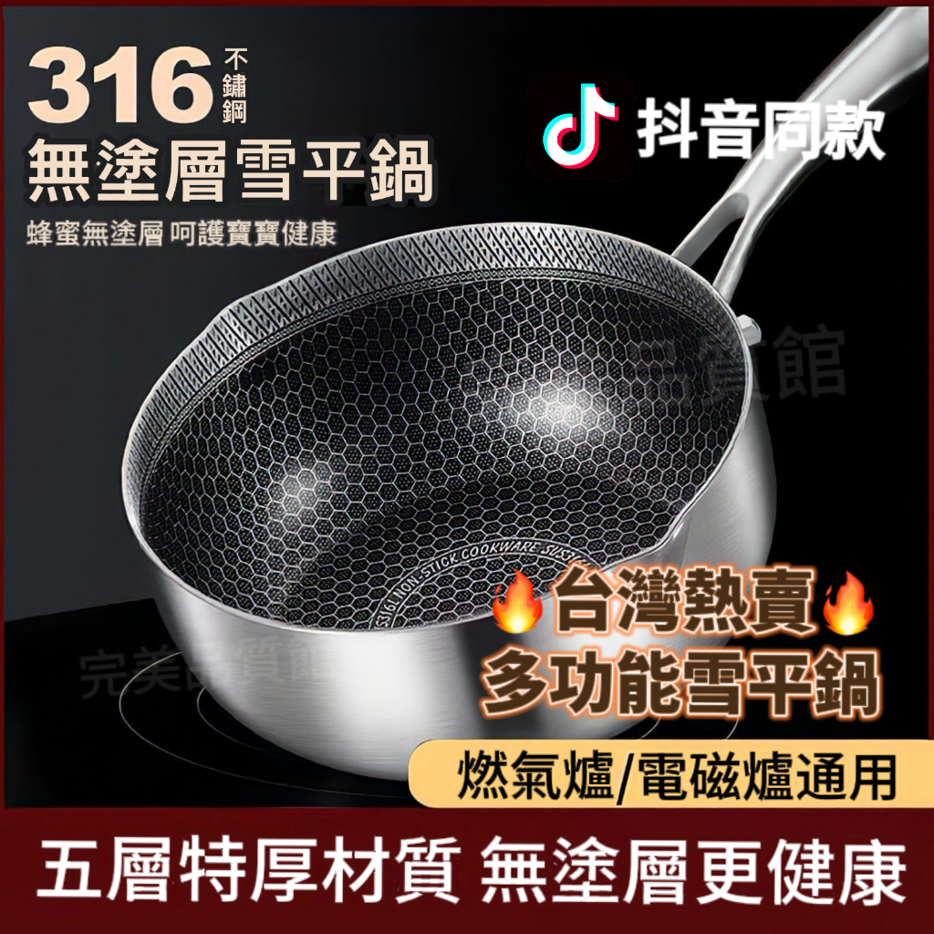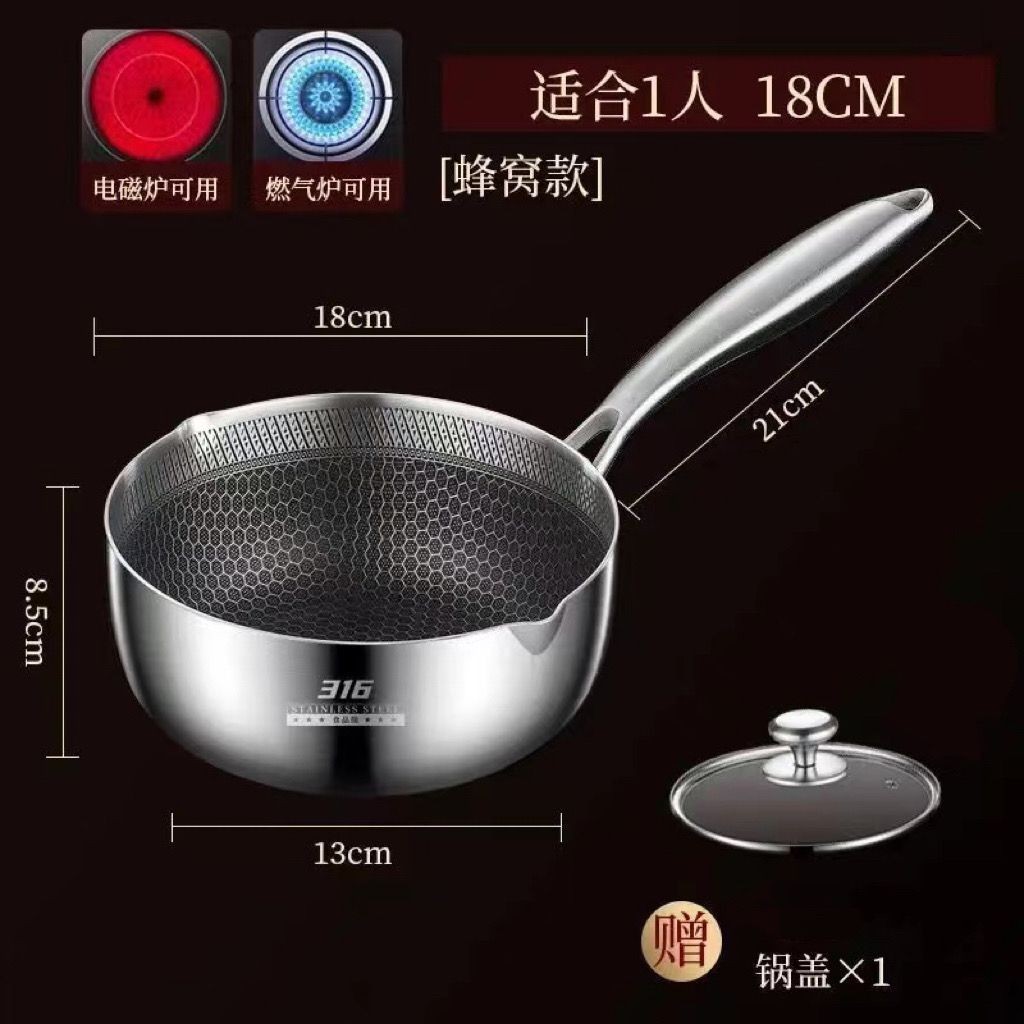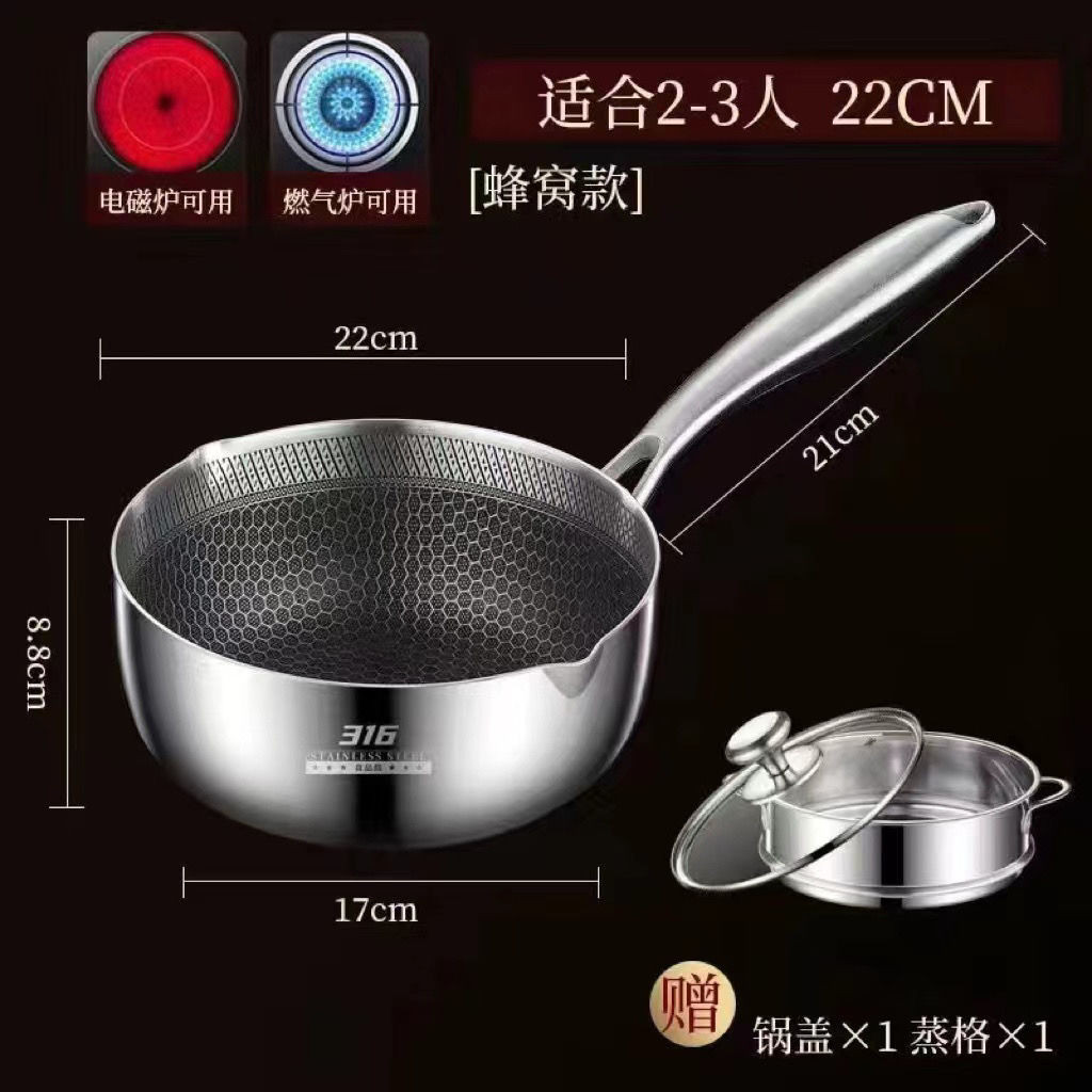 🔥抖音新品 品質保證🔥德國316不銹鋼雪平鍋不粘鍋傢用多功能嬰兒寶寶輔食鍋奶鍋小炒鍋 蜂窩雪平鍋 白鐵雪平鍋 不鏽鋼小鍋