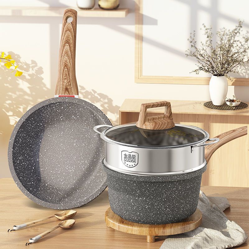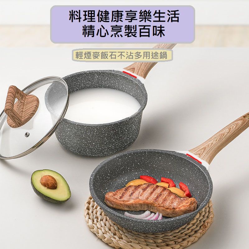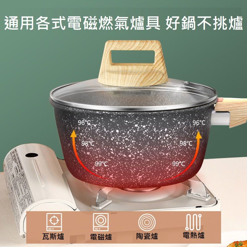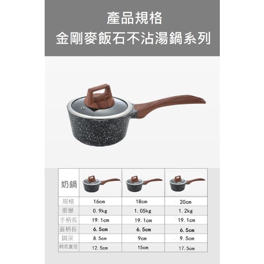 [台灣現貨]日式真麥飯礦石不沾雪平鍋 贈鍋蓋 鍋內無鉚釘 牛奶鍋 泡麵鍋 湯鍋 16/18/20CM 附蒸籠款式