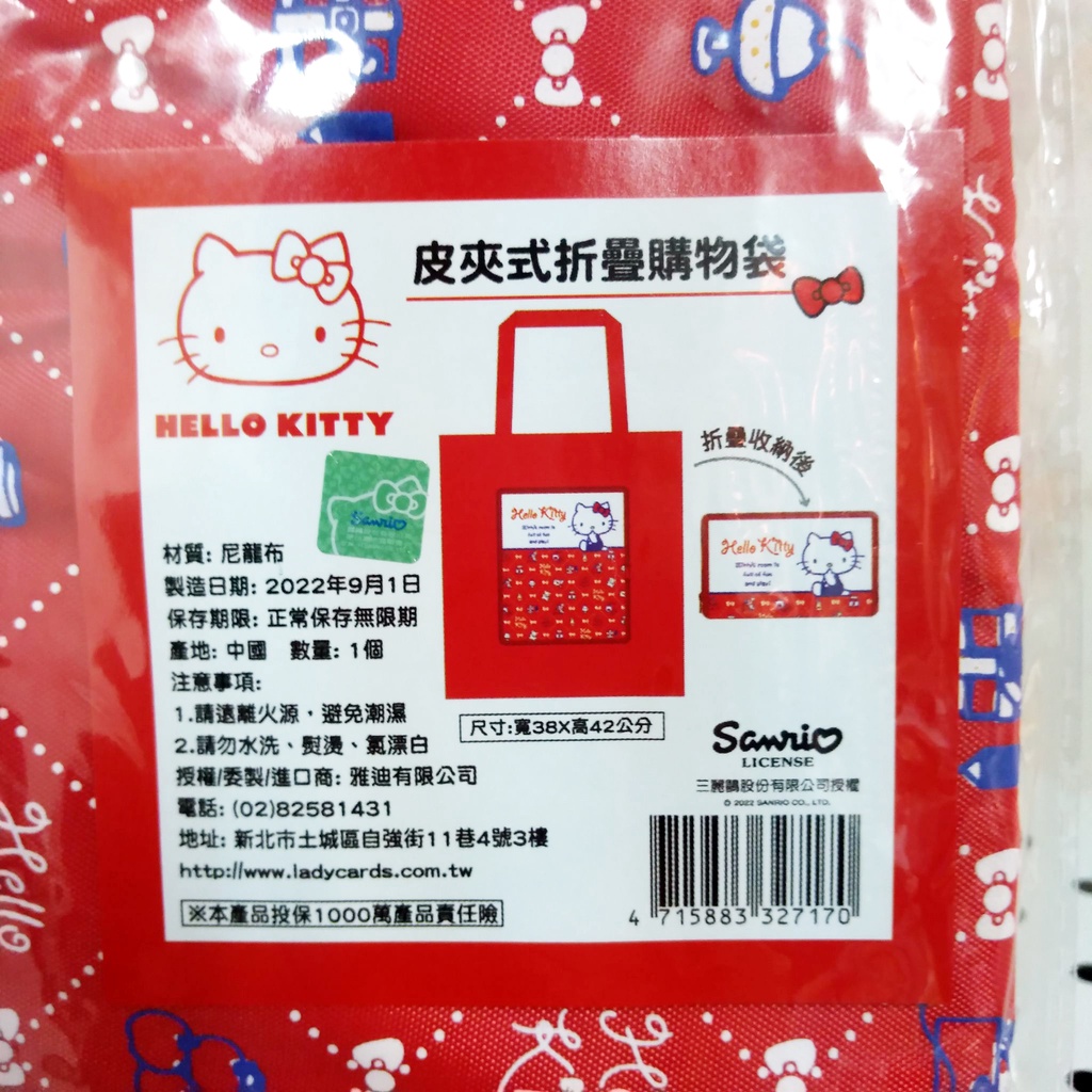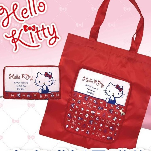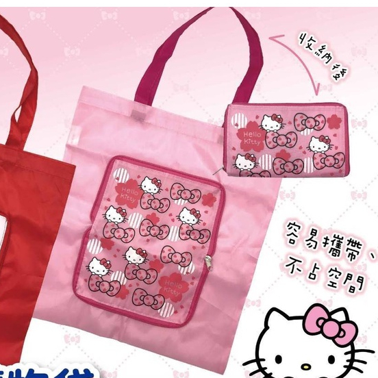[台灣現貨][正版授權] Hello Kitty 凱蒂貓 皮夾式摺疊購物袋 環保袋 三麗鷗 [知日文具精品]