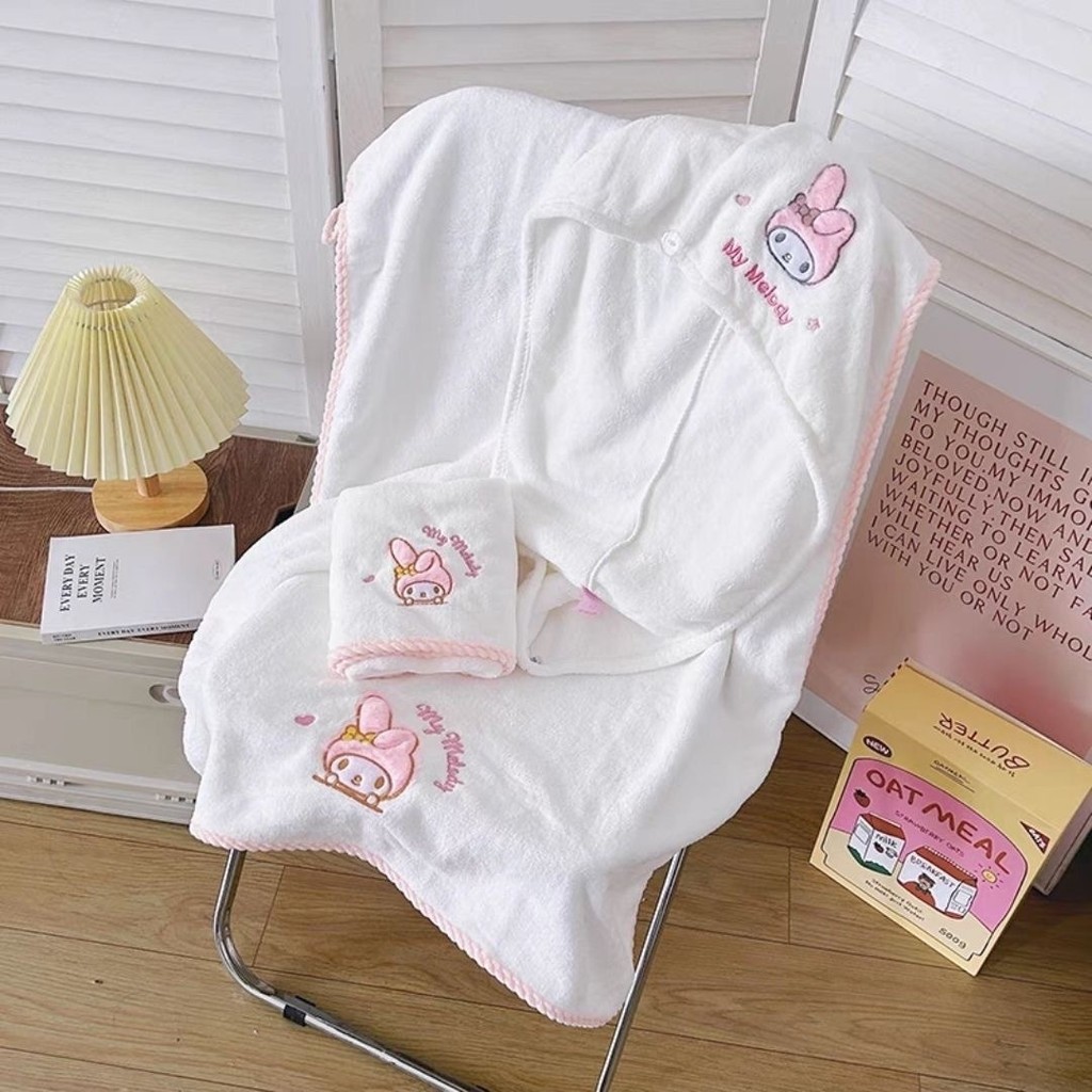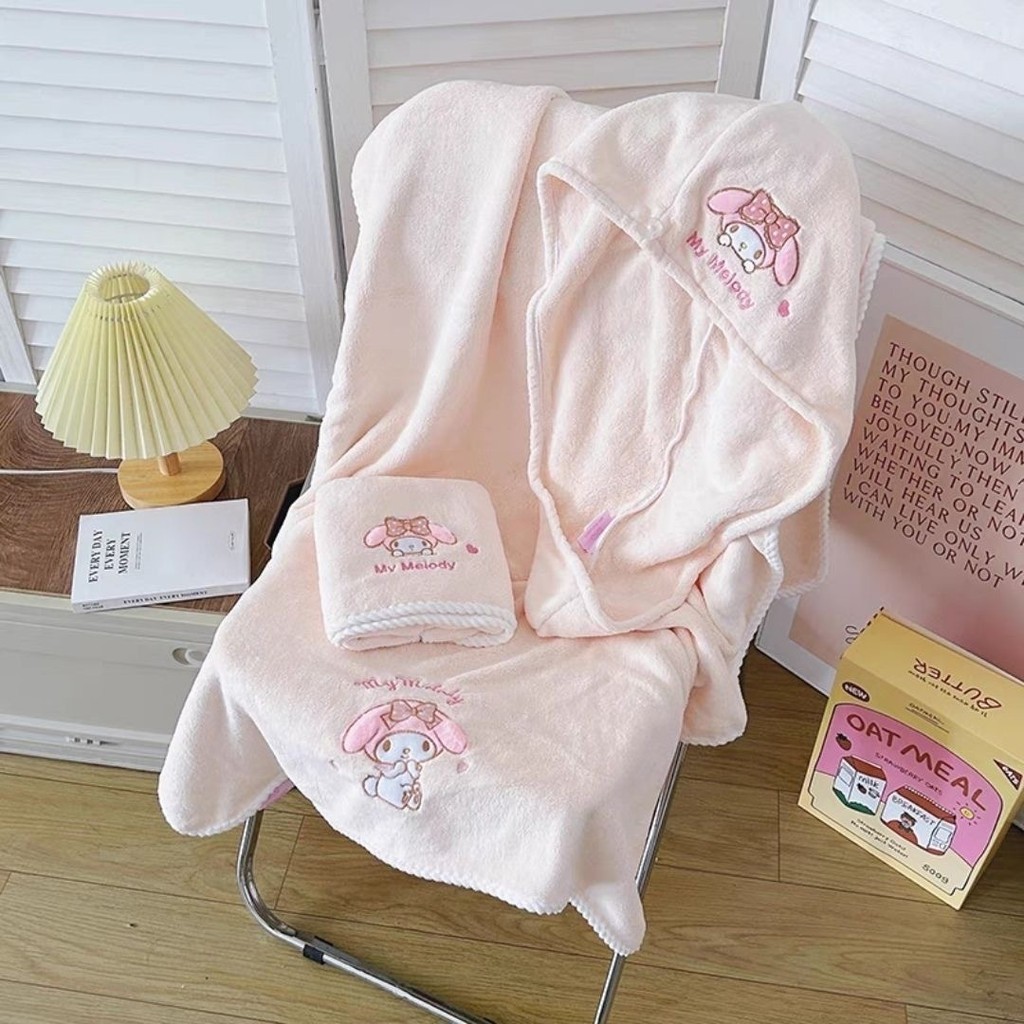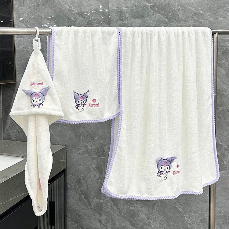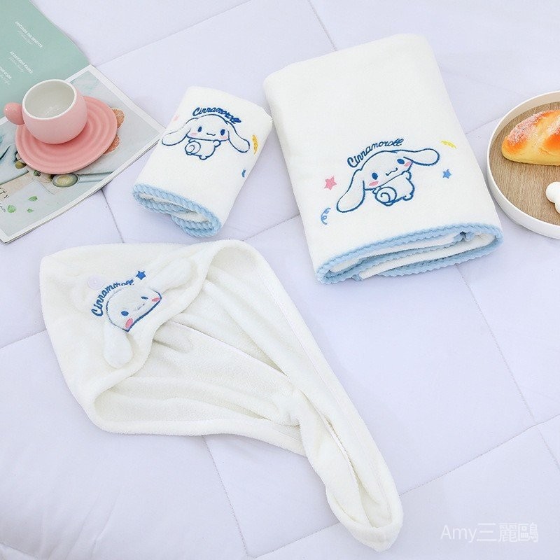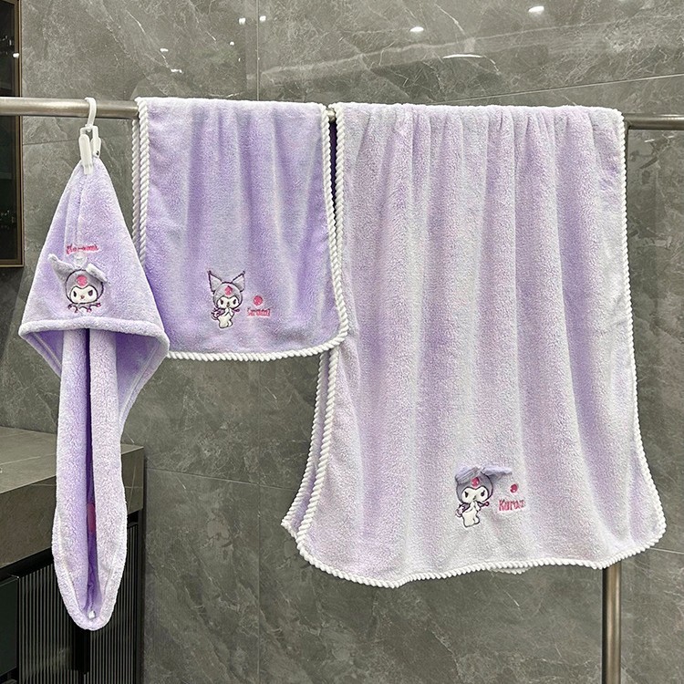 [現貨]高品質卡通庫洛米玉桂狗毛巾浴巾幹髮帽套裝 珊瑚絨學生宿捨浴巾三件套